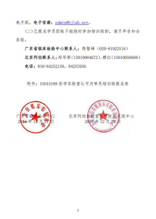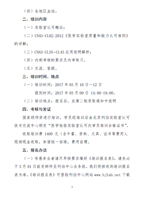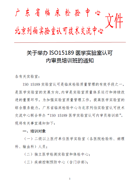 关于举办ISO15189医学实验室认可内审员培训班的通知