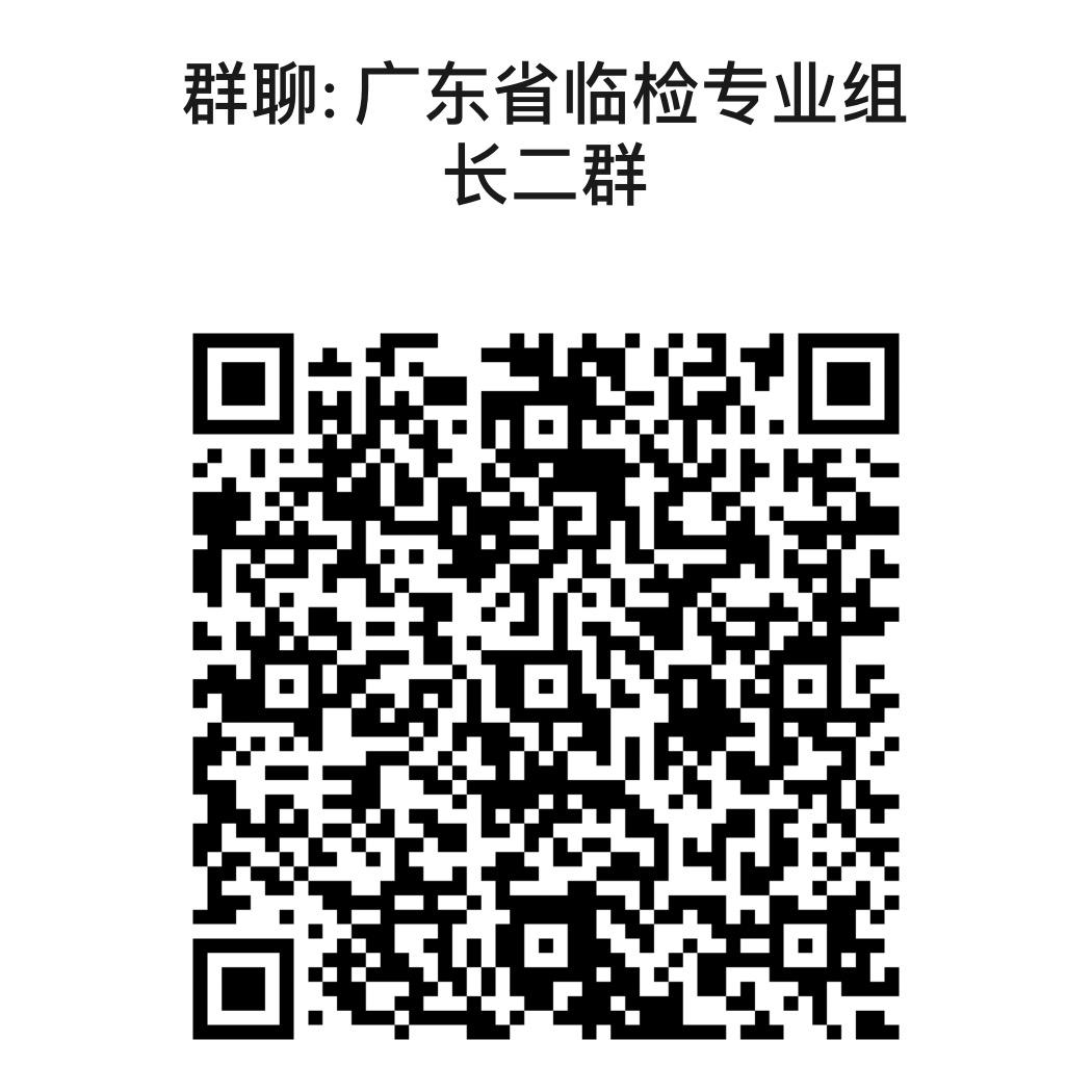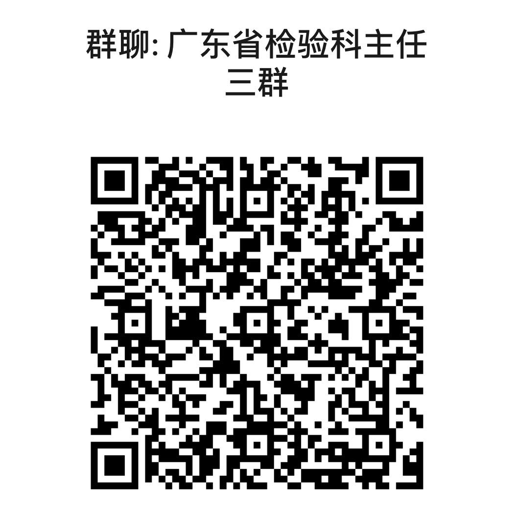 为进一步推进高质量检验结果互认工作,对互认结果进行精细化管理,加强各医疗机构间沟通交流,广东省临床检验中心拟建立广东省检验科主任、输血科主任以及专业组长微信群,分别为广东省临床检验专业质量控制中心-生化专业组长群、临检专业组长群、免疫专业组长群、微生物专业组长群与分子诊断专业组长群,以下为各专业组群二维码,请各医疗机构实验室组长按专业加入群聊,进群后更改名称为医疗机构名称+姓名,谢谢大家配合!