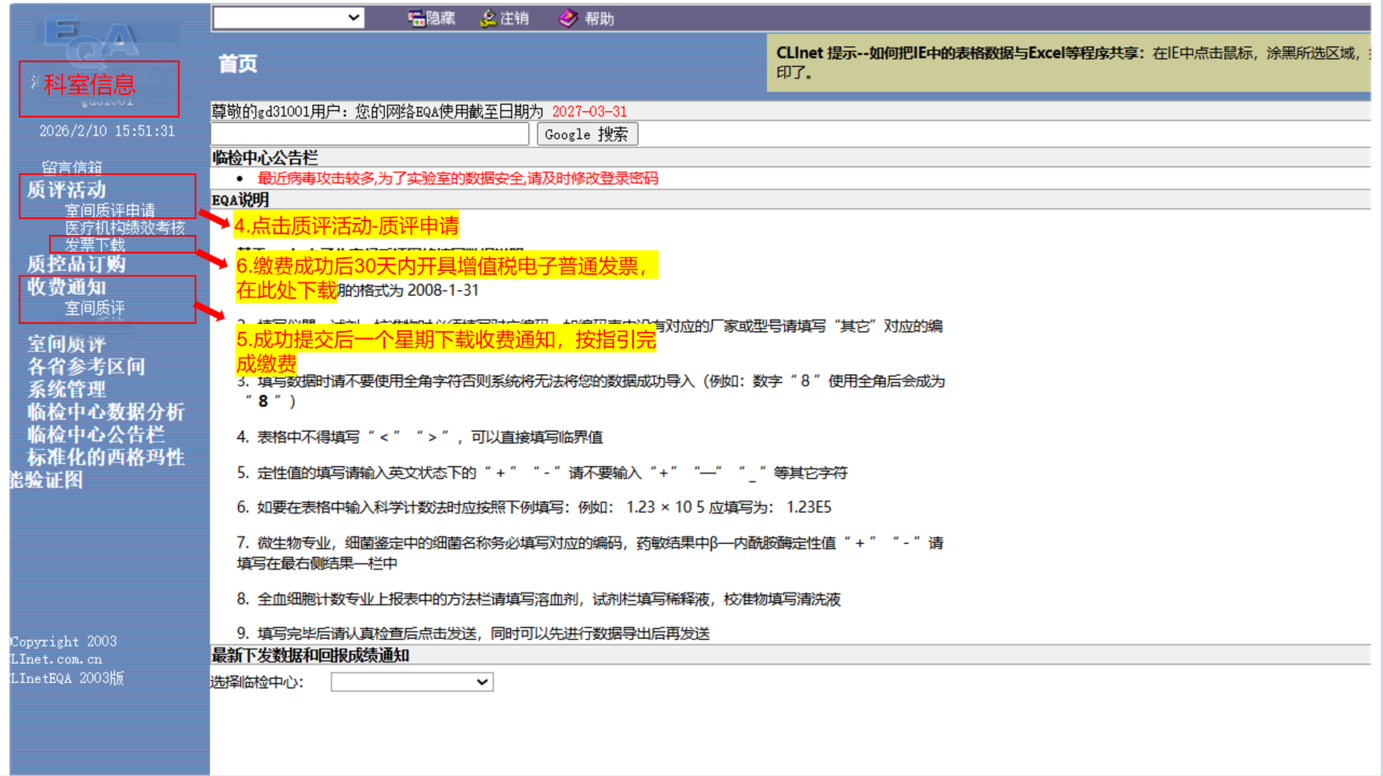 以上操作均在广东省临床检验中心官网页(点击跳转)进行,请仔细阅读如下说明后再申请!