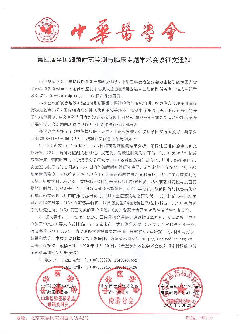 第四届全国细菌耐药监测与临床专题学术会议征文通知